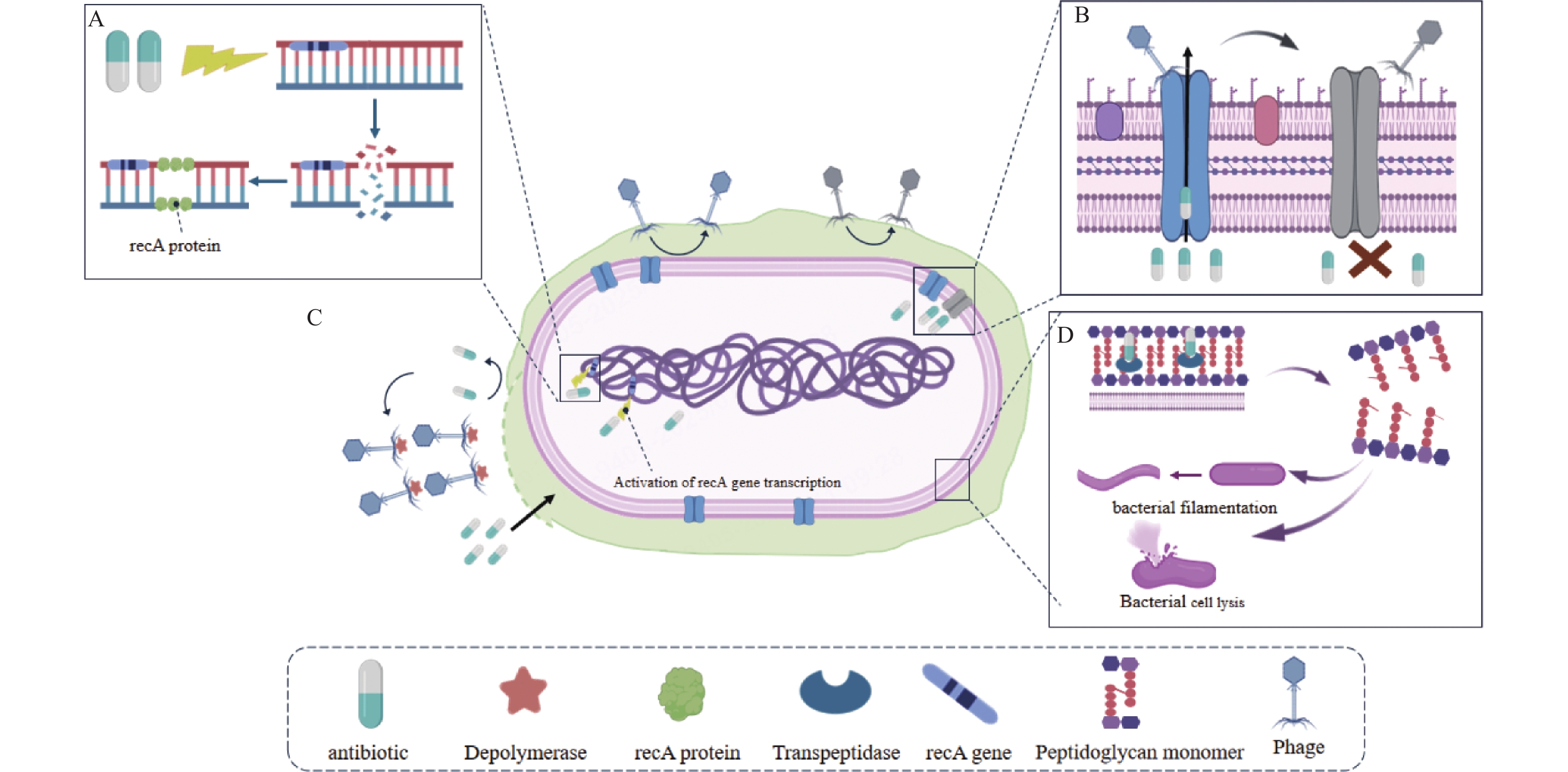 抗生素滥用导致耐药菌迅速增加,细菌感染难以有效控制,对人类健康构成严重威胁。随着抗生素耐药性问题的日益加剧和新抗生素研发滞后,寻找更有效的治疗策略成为全球公共卫生领域的迫切需求。噬菌体作为潜在治疗方案,近年来受到广泛关注,但噬菌体存在宿主范围狭窄、溶源性现象等局限性。噬菌体-抗生素协同作用通过增强噬菌体裂解活性,减少抗生素剂量,显著降低耐药风险,展现出卓越的抗菌效果。本文综述了噬菌体-抗生素协同作用的机制及研究进展,以期进一步推动噬菌体与抗生素联合疗法的研究与应用,为应对抗生素耐药性问题提供新的解决方案。
