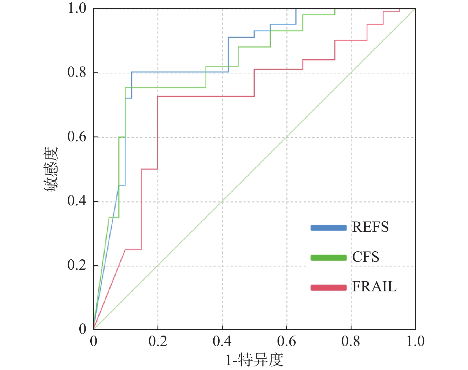目的 探析衰弱筛查量表(frail scale,FRAIL)、临床衰弱量表(clinical frailty scale,CFS)、自我报告埃德蒙顿衰弱量表(reported edmonton frail scale,REFS)对老年衰弱患者谵妄的预测评估及风险因素分析。 方法 选择成都市第六人民医院2023年1月至12月老年医学科收治的187例老年衰弱住院患者作为研究对象。采用 FRAIL、CFS、REFS量表评估衰弱指数,收集患者各项资料资料并构建谵妄相关风险队列。记录谵妄发生率、发生持续时间及预后结局;分析发生与未发生谵妄患者的FRAIL、CFS、REFS量表;对比发生与未发生谵妄患者临床特征;采用Logistic回归分析老年衰弱患者发生谵妄的风险因素,ROC曲线分析FRAIL、CFS、REFS对老年衰弱患者谵妄发生的预测效能。 结果 187例老年衰弱住院患者中发生谵妄34例(18.18%),未发生谵妄153例(81.82%)。发生谵妄组患者FRAIL、CFS、REFS量表评分均高于未发生组(P < 0.05)。两组患者年龄、中风、营养不良、认知障碍、活动受限、重度疼痛特征对比有差异(P < 0.05)。Logistic结果显示,年龄≥75岁、中风、营养不良、认知障碍、活动受限、重度疼痛、FRAIL、CFS、REFS均为老年衰弱患者发生谵妄风险因素(P < 0.05)。ROC曲线显示,REFS对老年衰弱患者谵妄发生的ROC曲线下面积为0.813(0.739~0.843)较FRAIL、CFS更高。 结论 老年衰弱患者发生谵妄影响因素主要与年龄≥75岁、中风、营养不良、认知障碍、活动受限、重度疼痛、衰弱程度有关,且相较于FRAIL、CFS量表,REFS量表预测谵妄效能更高。