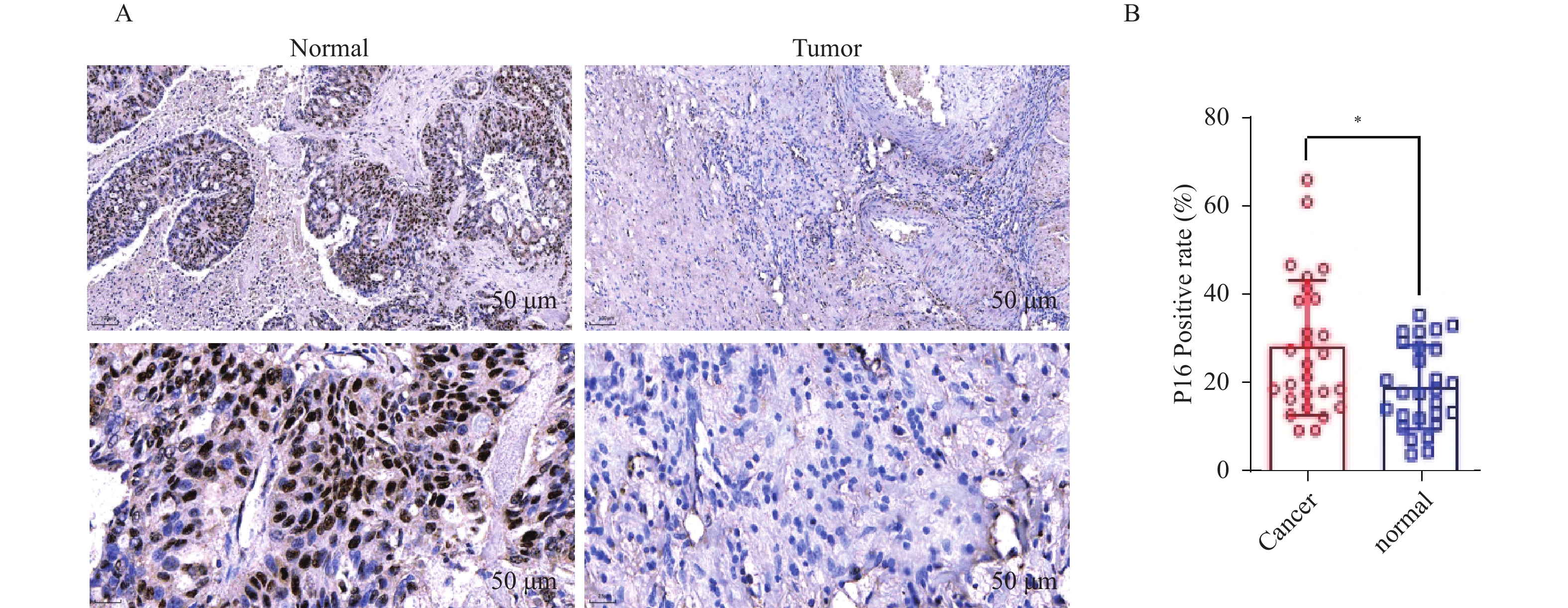 目的 通过临床水平和细胞水平验证p16的表达模式,并进一步探索p16对人胆囊癌(gallbladder cancer,GBC)细胞周期及脂肪酸代谢的影响。 方法 胆囊标本取自2021年1月至2022年12月在昆明医科大学附属第二医院的60例接受胆囊切除的患者。其中胆囊结石伴胆囊炎标本30例,GBC标本30例。采用实时荧光定量反转录PCR(RT-qPCR)检测各GBC样本及胆囊炎样本的p16mRNA的水平、采用免疫组织化学染色检测各GBC样本及胆囊炎样本的p16蛋白表达水平。利用肿瘤细胞的CCK-8检测稳转细胞株的增殖能力、采用流式细胞技术检测肿瘤细胞的凋亡和分裂周期。RT-qPCR检测低表达p16癌细胞中过氧化物酶体相关基因;线粒体氧化相关基因;脂肪酸合成相关基因的表达情况。 结果 p16mRNA及p16蛋白在GBC中的表达显著高于慢性胆囊炎(P < 0.05)。低表达p16之后,肿瘤细胞凋亡率降低,G0/G1期降低,S期升高,细胞分裂加快,差异有统计学意义(P < 0.0001 )。低表达p16之后,GBC中的大部分相关基因显著上调,差异具有统计学意义(P < 0.05)。 结论 p16在GBC中显著高表达。p16能够抑制GBC细胞周期的进展。p16可能通过调节脂肪酸代谢的途径影响GBC细胞的发生发展。