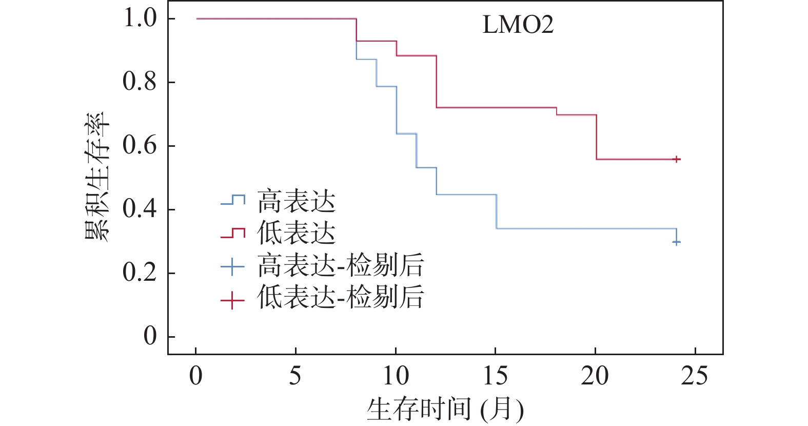 目的 探讨胰腺癌组织中LIM-only蛋白2(LIM domain only 2,LMO2)和细胞周期相关蛋白1(cell cycle associated protein 1,CAPRIN1)的表达特点及其与临床病理特征和预后的关系,同时通过体外敲低实验验证其对胰腺癌细胞功能的影响。 方法 选取2015年8月至2018年3月邢台市中心医院收治并经病理确诊的90例胰腺癌患者,采集癌组织标本作为病例组,同时以癌旁组织(距癌缘>2 cm,经病理学确认无癌浸润及异常病变)作为对照组。采用免疫组织化学方法检测LMO2和CAPRIN1的表达水平,并结合临床资料分析其与分化程度、淋巴结转移及TNM分期等临床病理特征的关系。随访2年,利用Kaplan-Meier方法分析生存情况,并采用Cox比例风险回归模型评估独立预后因素。体外实验中,选取PANC-1和BxPC-3细胞系,通过Lipofectamine 3000转染特异性siRNA敲低LMO2、CAPRIN1或联合敲低,采用qPCR和Western blot验证敲低效率,并通过CCK-8、EdU、划痕及Transwell实验评估细胞增殖和迁移能力。 结果 免疫组织化学结果显示,LMO2和CAPRIN1在胰腺癌组织中阳性表达率显著高于癌旁组织(P = 0.009;P = 0.012)。LMO2高表达与分化程度(P = 0.026)、淋巴结转移(P = 0.007)相关;CAPRIN1高表达与TNM分期(P = 0.019)、分化程度(P = 0.018)、淋巴结转移(P = 0.004)相关。相关性分析显示LMO2与CAPRIN1表达呈正相关(P = 0.013)。随访结果显示,LMO2高表达组和CAPRIN1高表达组患者生存率均显著低于低表达组(P = 0.015;P = 0.021)。多因素Cox回归分析提示,LMO2高表达(P = 0.031)、CAPRIN1高表达(P = 0.019)、TNMⅢ+Ⅳ期(P = 0.005)、低/中分化(P = 0.047)及淋巴结转移(P = 0.027)均为胰腺癌患者预后的独立危险因素。体外实验结果显示,敲低LMO2或CAPRIN1可显著抑制PANC-1和BxPC-3细胞增殖与迁移能力,联合敲低效果更显著(P < 0.001)。 结论 LMO2和CAPRIN1在胰腺癌组织中高表达,与不良临床病理特征及较差生存相关。体外功能实验进一步验证其在胰腺癌细胞增殖和迁移中的关键作用,提示LMO2和CAPRIN1可作为胰腺癌潜在预后标志物及治疗靶点。