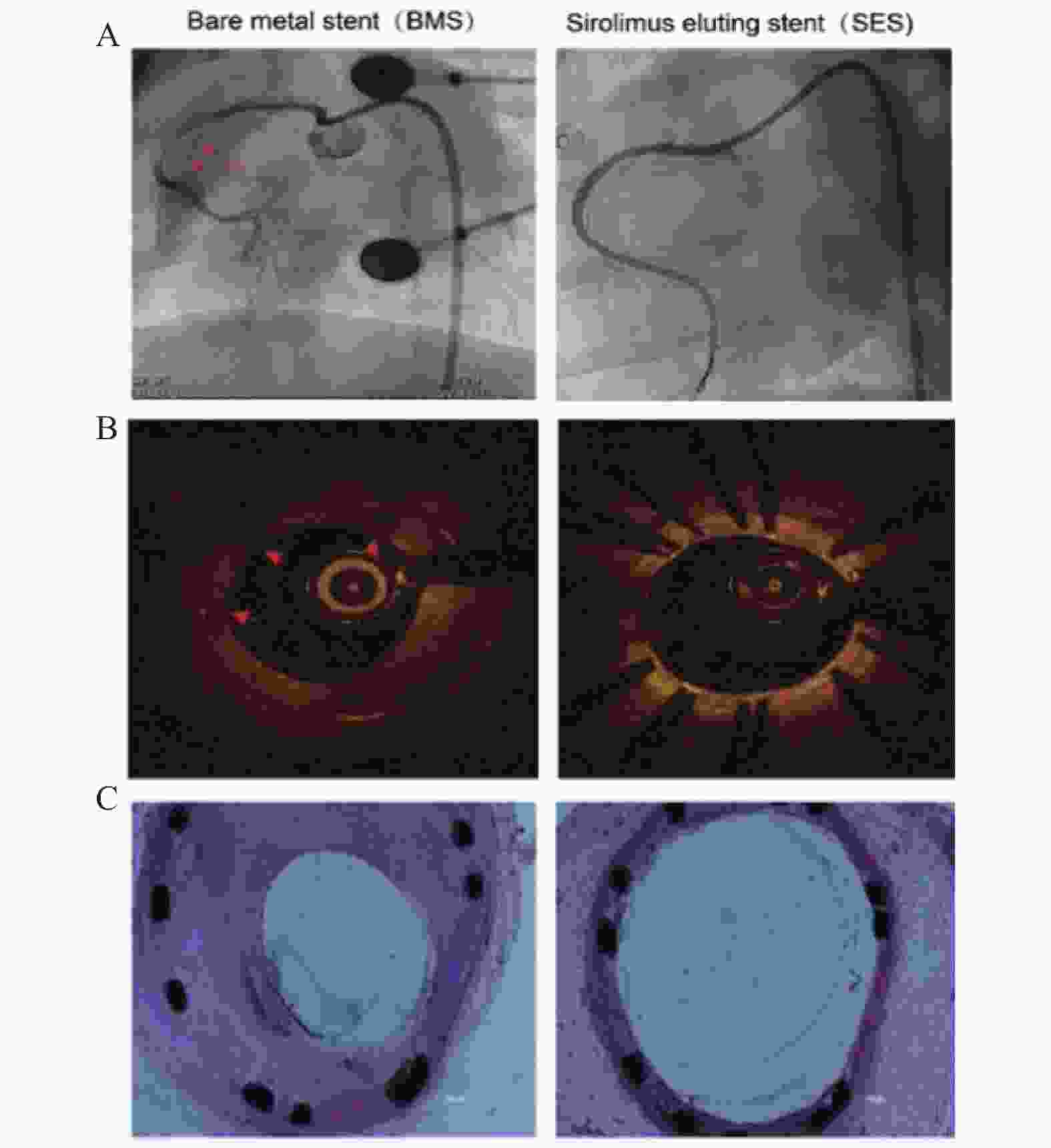 图 1 小型猪PCI术后28 d血管内影像及相应组织学切片[33]