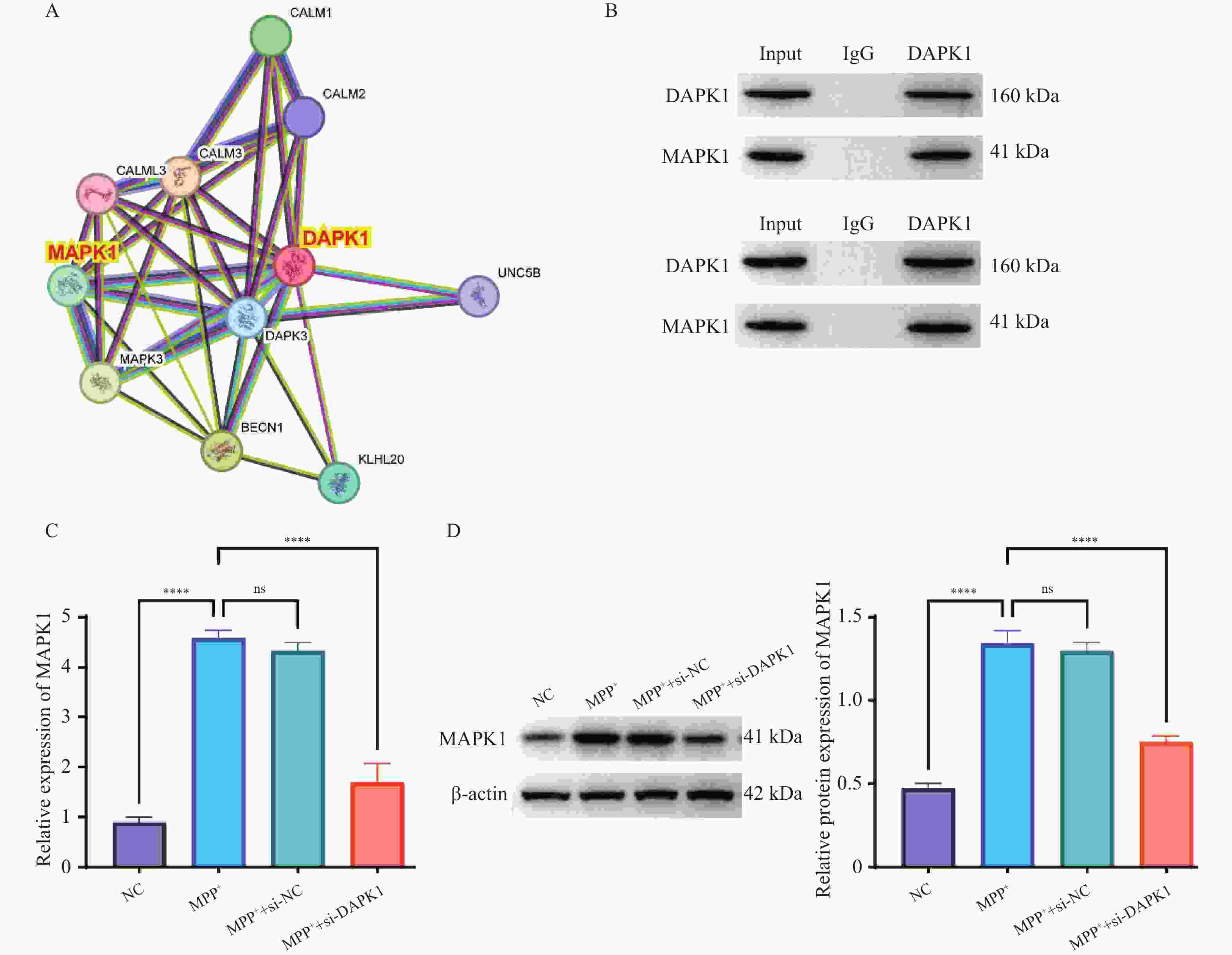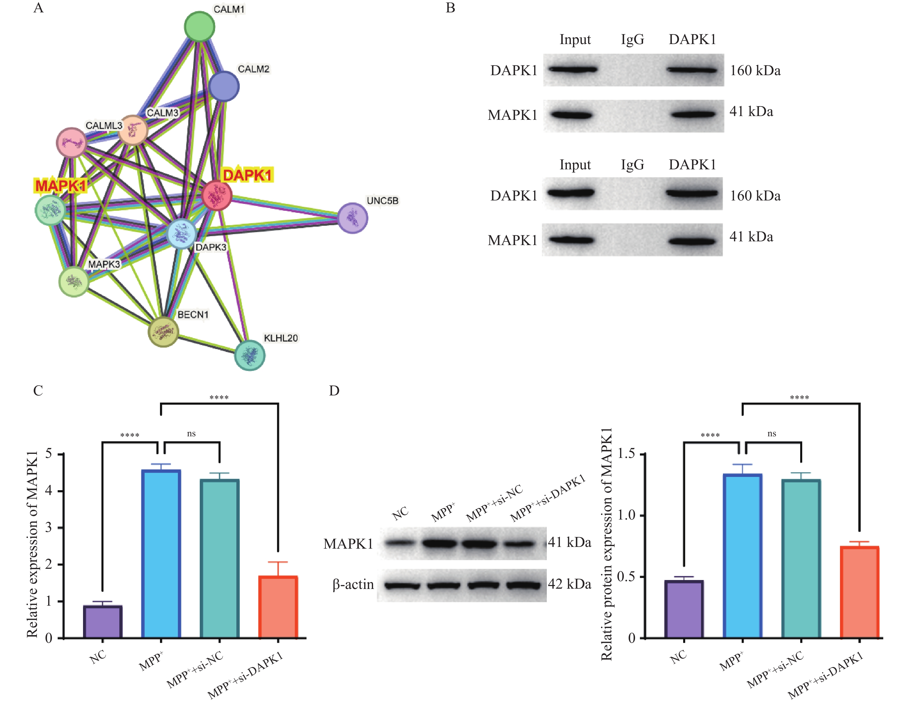 图 4 沉默DAPK1与MAPK1相互作用减轻MN9D细胞中MPP+诱发的神经元损伤