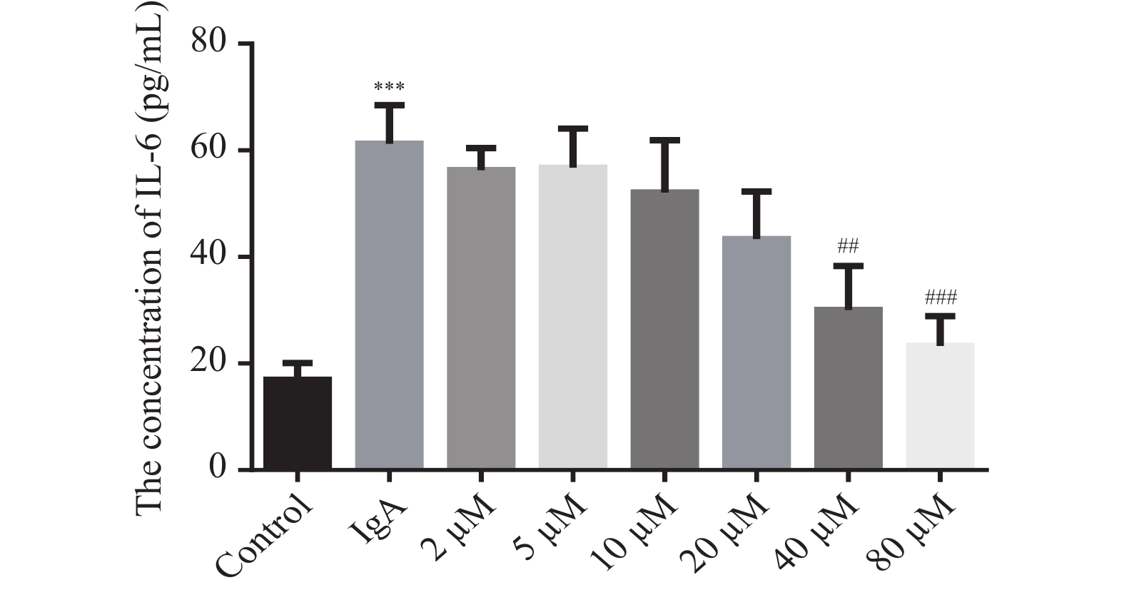 Figure 9. q-PCR detection of mRNA expression levels of ESR1、BCL-2、IL-6、CASP3 and JUN in IgA-stimulated HMCs treated with quercetin($\bar x \pm s $,n = 3)