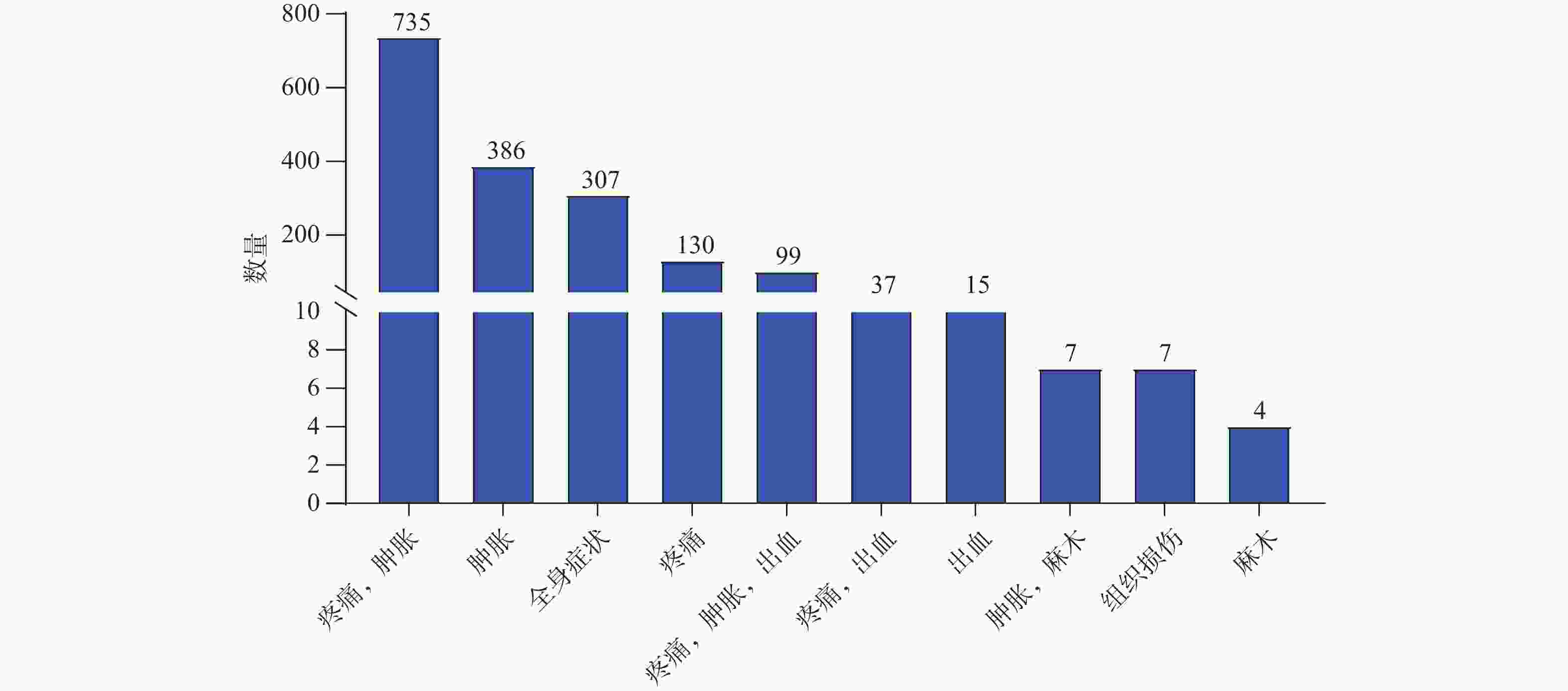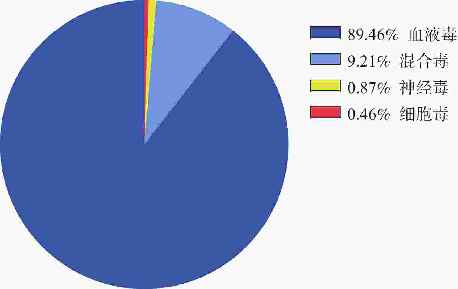 目的 探究2023-2024年云南省毒蛇咬伤的流行病学特点及治疗效果。 方法 收集云南省16个地级行政区2023年1月至2024年12月收治的 1727 例蛇伤病例资料,采用回顾性分析方法,重点考察以下指标:(1)人口学特征(年龄、性别分布);(2)伤害事件特征(发生地点、时间分布、受伤部位);(3)毒蛇种类构成;(4)临床特征与处置方案;(5)疗效评价指标(局部症状缓解时间、住院天数及随访结果)。结果 云南省蛇咬伤事件高发地区为文山(308/ 1727 )、昆明(285/1727 )、曲靖(270/1727 )、临沧(139/1727 )、保山(120/1727 )、大理(105/1727 )等,主要发生在6月-9月份;最常见的毒蛇种类为以血液毒毒素为主的烙铁头蛇(Ovophis)和竹叶青蛇(Trimeresurus);咬伤人群大部分为青年;临床表现主要为疼痛和肿胀;咬伤部位主要为四肢;咬伤地点主要为山林/山地;抗蛇毒血清使用以抗五步蛇蛇毒血清为主;肿胀消退时间大多为2(2,3)d,平均住院时长为4(3,5)d;96.46%接受正规诊疗的蛇伤患者基本痊愈,随访0.35%的致残率。结论 云南省毒蛇咬伤事件具有显著的地域与季节集中性,文山、昆明、曲靖等地为高发区域,夏季6月-9月是事件高峰期,且致伤蛇类以含血液毒的蛇为主;受害群体以青年为主,咬伤多发生于四肢,疼痛与肿胀为典型症状;治疗以抗五步蛇血清为主;接受正规诊疗的蛇伤患者痊愈率较高,随访致残率较低,但仍需要提高公众对蛇咬伤规范诊疗的认识。 Abstract:Objective To explore the epidemiological characteristics and treatment outcomes of venomous snake bites in Yunnan Province from 2023 to 2024. Methods A retrospective analysis was performed on 1, 727 snakebite cases collected from 16 administrative regions in Yunnan Province between January 2023 and December 2024, focusing on the following indicators: (1) demographic characteristics (age and gender distribution); (2) characteristics of injury events (location, time distribution, and affected body parts); (3) composition of venomous snake species; (4) clinical features and treatment protocols; (5) efficacy evaluation indicators (time for local symptom relief, duration of hospital stay, and follow-up results). Results High-incidence areas for snake bites in Yunnan Province included Wenshan (308/ 1727 ), Kunming (285/1727 ), Qujing (270/1727 ), Lincang (139/1727 ), Baoshan (120/1727 ), and Dali (105/1727 ), with incidents primarily occurring from June to September. The most frequently encountered venomous snake species were Ovophis and Trimeresurus, known for their hemotoxic venom. Bite victims were mainly young adults. Clinical manifestations primarily included pain and swelling, with bites mainly occurring on limbs and in mountainous or forested areas. Anti-venom treatment concentrated on anti-ancistrodon acutus serum. Swelling generally subsided within 2 (2, 3) days, with an average hospital stay of 4 (3, 5) days. 96.46% of patients receiving standardized treatment fully recovered, with a follow-up disability rate of 0.35%.Conclusion The incidents of venomous snake bites in Yunnan Province have significant regional and seasonal concentration, with Wenshan, Kunming, Qujing and other areas being high-risk areas. The peak period of incidents is from June to September in summer, and the main types of snakes causing injuries are those containing blood toxins; The victim group is mainly young people, and bites often occur in the limbs, with typical symptoms of pain and swelling; The main treatment is anti snake serum; Snake bite patients who receive formal diagnosis and treatment have a higher recovery rate and a lower follow-up disability rate, but there is still a need to raise public awareness of standardized diagnosis and treatment for snake bites. -