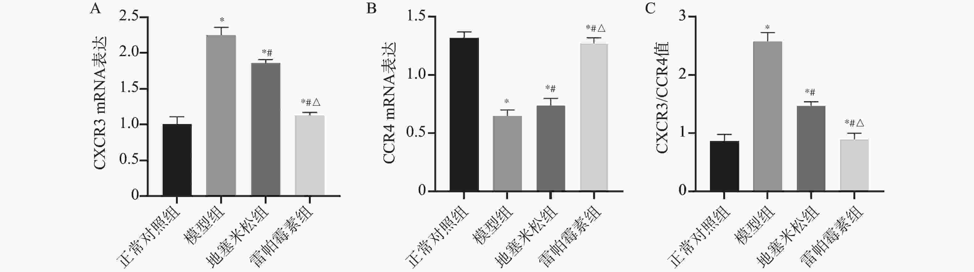 基因 引物序列 长度(bp) CXCR3 5'-AGGTCAGTGAACGTCAAGTGCTAG-3' 22 5'-CAAAAAGAGGAGGCTGTAGAGGA-3' CCR4 5'-GCCTCCAACACAGACTTCCTTG-3' 23 5'-AGCGTTCGGTTCTAGTTTCCAC-3' β-actin 5'-GGAGATTACTGCCCTGGCTCCTA-3' 20 5'-GACTCATCGTACTCCTGCTTGCTG-3' -
