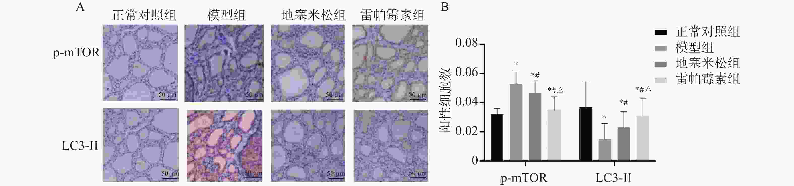 [1] Albano D, Dondi F, Zilioli V, et al. The role of Hashimoto thyroiditis in predicting radioiodine ablation efficacy and prognosis of low to intermediate risk differentiated thyroid cancer[J]. Ann Nucl Med, 2021, 35(10): 1089-1099. doi: 10.1007/s12149-021-01644-1 [2] 李方远, 陆华, 王通, 等. 接绪资冲颗粒对实验性自身免疫性甲状腺炎致卵巢储备功能下降小鼠肠道菌群的影响[J]. 中华中医药杂志, 2023, 38(8): 3799-3804. [3] Poillet-Perez L, Sarry J E, Joffre C. Autophagy is a major metabolic regulator involved in cancer therapy resistance[J]. Cell Reports, 2021, 36(7): 109528. doi: 10.1016/j.celrep.2021.109528 [4] 张雪琪, 张帆, 滕卫平, 辅助性T细胞17介导桥本甲状腺炎发病机制的研究现状. 中华内分泌代谢杂志, 2022, 38(11): 1001-1005. [5] Yu X, J Wu, Wu Q, et al. Quantitative analysis of autophagy-related protein LC3B by quantum-dot- based molecular imaging Chapter outline[J]. Methods in Cell Biology, 2021, 165(4): 177-185. [6] 林泽杭, 段志敏, 徐松, 等. 白念珠菌菌丝调控小鼠巨噬细胞自噬关键分子微管相关蛋白1轻链3的实验研究[J]. 中华皮肤科杂志, 2021, 54(3): 189-195. [7] 赵连春, 牛丽霞, 赵振军, 等. CXC趋化因子受体3对甲状腺细胞自噬与炎症的影响及机制[J]. 安徽医学, 2024, 45(5): 542-548. [8] Lu Q, Dou Y, Yu T, et al. Association of thyroglobulin antibody and thyroid peroxidase antibody status with aggressive features in papillary thyroid carcinoma with Hashimoto's thyroiditis[J]. Gland Surg, 2025, 14(6): 1091-1100. doi: 10.21037/gs-2025-47 [9] Zhang L, Sun X, Liu L, et al. Excessive iodine induces thyroid follicular epithelial cells apoptosis by activating HIF-1α-mediated hypoxia pathway in Hashimoto thyroiditis[J]. Mol Biol Rep., 2023, 50(4): 3633-3640. doi: 10.1007/s11033-023-08273-z [10] 李会云, 孟冉, 迟茹雪, 等. 雷帕霉素上调线粒体自噬保护脓毒症大鼠下丘脑功能[J]. 现代生物医学进展, 2025, 25(5): 812-821+854. [11] 贾思锋, 张卓, 段昱宇, 等. 基于中西医临床病证特点的自身免疫性甲状腺炎动物模型分析[J]. 中国实验方剂学杂志, 2025, 31(18): 235-243. [12] 吴菁华. 不同治疗方案对自身免疫性甲状腺炎的疗效比较[D]. 广州: 广州医科大学, 2023. [13] 万斌, 陈正涛, 冷玉琳, 等. 肠道菌群和桥本甲状腺炎的关系及中医药调控研究进展[J]. 世界科学技术-中医药现代化, 2025, 27(3): 626-632. [14] 巩博深, 单忠艳. 肠道菌群与炎症小体在自身免疫性甲状腺炎中的相互调控[J]. 国际内分泌代谢杂志, 2021, 41(4): 309-312. [15] da Silva G B, Yamauchi M A, Bagatini M D. Oxidative stress in Hashimoto's thyroiditis: possible adjuvant therapies to attenuate deleterious effects[J]. Mol Cell Biochem., 2023, 478(4): 949-966. doi: 10.1007/s11010-022-04564-4 [16] 蒋学林, 刘长江. 基于Akt/mTOR信号通路探讨洋地黄毒苷调控甲状腺滤泡上皮细胞自噬与凋亡的机制[J]. 现代中西医结合杂志, 2024, 33(4): 457-464. [17] 何呈燕, 李依雯, 甘玲, 等. PI3K/AKT/mTOR信号通路通过调控Th17细胞分化参与EAT小鼠甲状腺自身免疫损伤[J]. 中国医科大学学报, 2024, 53(11): 972-978. [18] 姚婷, 万明. 基于Akt/mTOR通路观察补中益气颗粒对实验性自身免疫性甲状腺炎大鼠的保护作用[J]. 陕西中医, 2023, 44(2): 159-164. [19] 杨加宁, 张立然. 雷帕霉素抑制mTOR激活自噬并调控铁死亡降低宫颈癌细胞增殖, 侵袭及迁移能力的实验研究[J]. 现代检验医学杂志, 2025, 40(3): 42-46. [20] Zhu S, Li X, Dang B, et al. Lycium Barbarum polysaccharide protects HaCaT cells from PM2.5-induced apoptosis via inhibiting oxidative stress, ER stress and autophagy[J]. Redox Rep, 2022, 27(1): 32-44. [21] Tang H, Wang J, Ji G, et al. MARCH5 Promotes the Progression of Thyroid cancer by Regulating Mitochondrial Autophagy Protein FUNDC1-mediated Pyroptosis[J]. Appl Biochem Biotechnol, 2025, 197(4): 2120-2132. [22] Dağdeviren M, Or Koca A, Akkan T, et al. Is oxidative stress a factor in the pathogenesis of subacute thyroiditis?[J]. Endokrynol Pol., 2022, 73(1): 64-70. [23] 刘梅, 黄晶, 王军, 等. 碘化钾通过诱导PARP1表达活化NF-κB/NLRP3炎症小体促进甲状腺滤泡细胞焦亡[J]. 中华内分泌代谢杂志, 2021, 37(9): 820-829. -