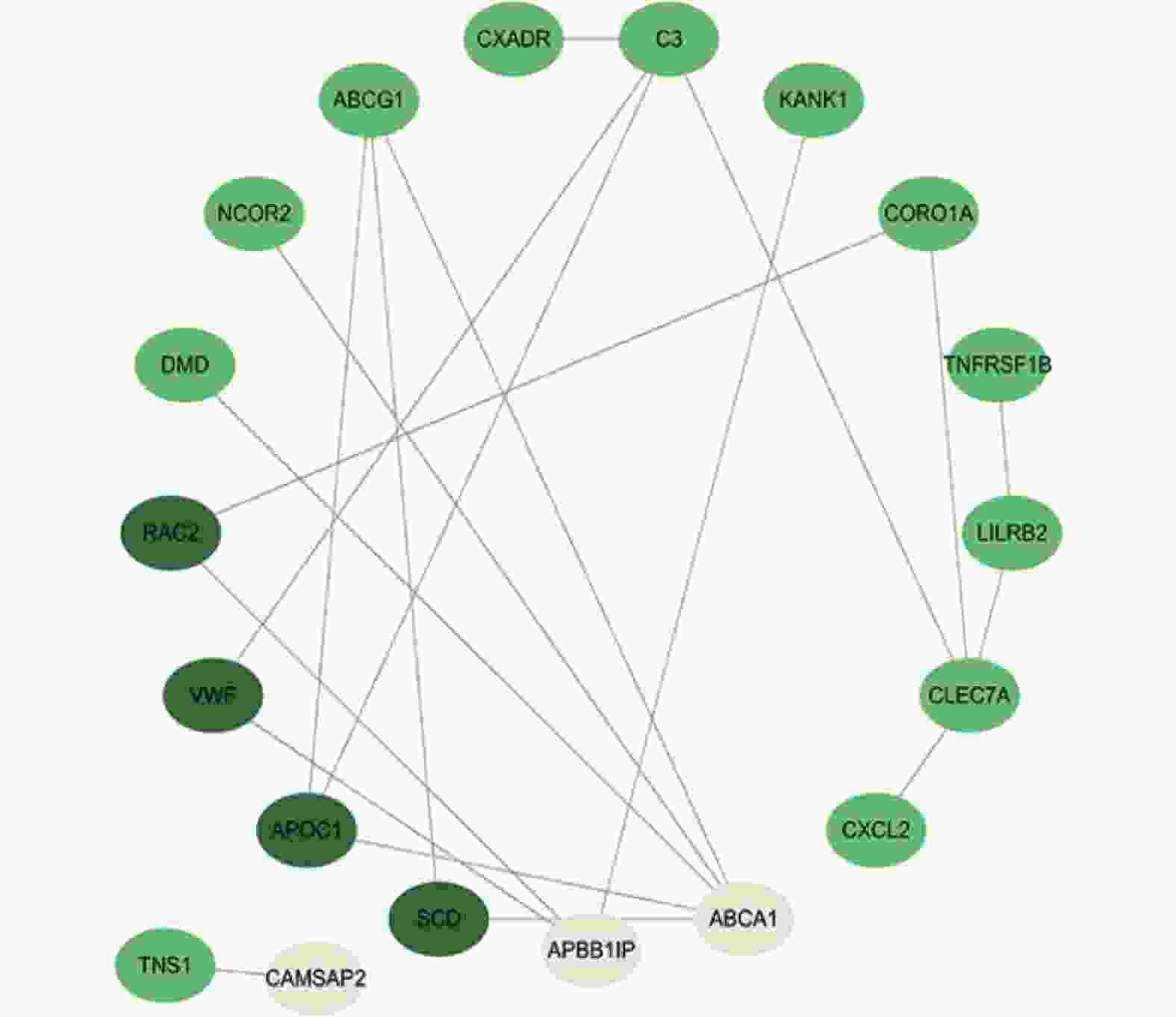 数据集 平台信息 样品来源 对照样本数 疾病样本数 GSE9874 GPL570 外周血样本 30 30 GSE28829 GPL570 斑块组织样本 13 16 GSE21545 GPL570 斑块组织样本,外周血样本 97 126 表 2 引物序列