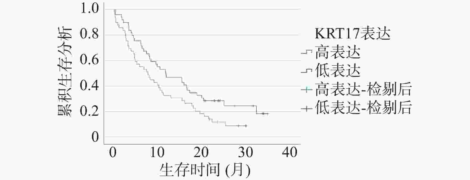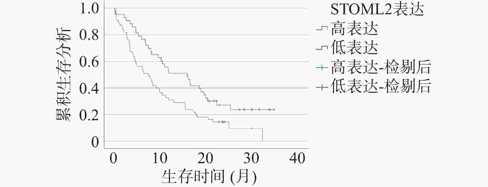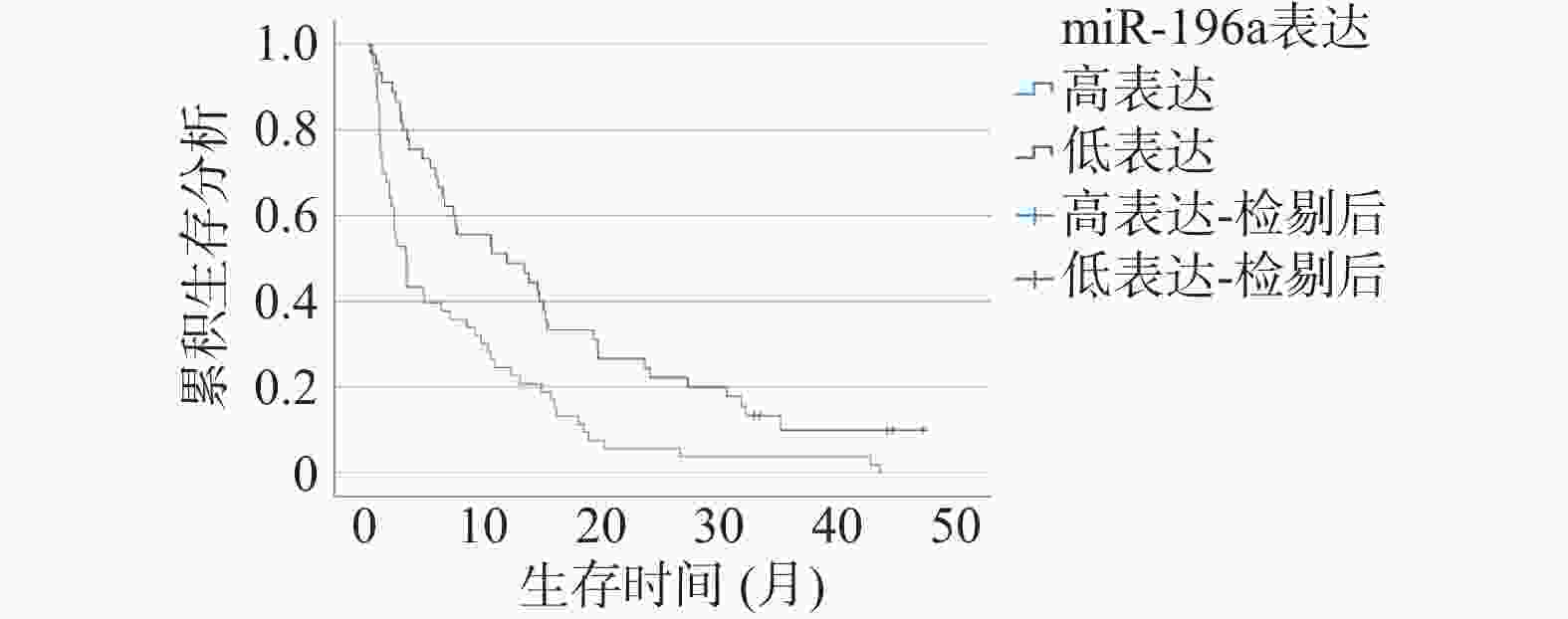 病理特征 n KRT17 mRNA t/P STOML2 mRNA t/P miR-196a t/P 年龄(岁) >45 52 1.20 ± 0.16 0.636/0.526 2.74 ± 0.54 0.263/0.575 2.66 ± 0.53 0.574/0.567 ≤45 46 1.18 ± 0.15 2.68 ± 0.51 2.60 ± 0.50 病理类型 鳞癌 72 1.18 ± 0.15 1.104/0.272 2.73 ± 0.53 0.673/0.503 2.65 ± 0.51 0.675/0.501 腺癌及其他 26 1.22 ± 0.18 2.65 ± 0.49 2.57 ± 0.54 肿瘤直径(cm) >4 59 1.21 ± 0.17 1.492/0.139 2.73 ± 0.50 0.473/0.637 2.67 ± 0.52 0.911/0.365 ≤4 39 1.16 ± 0.15 2.68 ± 0.53 2.57 ± 0.55 TNM分期 Ⅰ~Ⅱ期 68 1.14 ± 0.15 4.670/<0.001* 2.56 ± 0.54 4.163/<0.001* 2.39 ± 0.50 7.122/<0.001* Ⅲ期 30 1.30 ± 0.17 3.05 ± 0.53 3.18 ± 0.52 分化程度 中高分化 59 1.12 ± 0.16 4.897/<0.001* 2.51 ± 0.49 4.865/<0.001* 2.29 ± 0.48 8.258/<0.001* 低分化 39 1.29 ± 0.18 3.01 ± 0.51 3.15 ± 0.54 肌层浸润 有 44 1.21 ± 0.16 1.189/0.237 2.75 ± 0.52 0.649/0.518 2.68 ± 0.55 0.814/0.418 无 54 1.17 ± 0.17 2.68 ± 0.54 2.59 ± 0.54 淋巴结转移 是 28 1.31 ± 0.17 4.289/<0.001* 3.11 ± 0.56 4.650/<0.001* 3.22 ± 0.57 6.680/<0.001* 否 70 1.14 ± 0.18 2.55 ± 0.53 2.39 ± 0.55 *P < 0.05。 表 6 宫颈癌患者预后单因素分析[($ \bar x \pm s $)/n(%)]