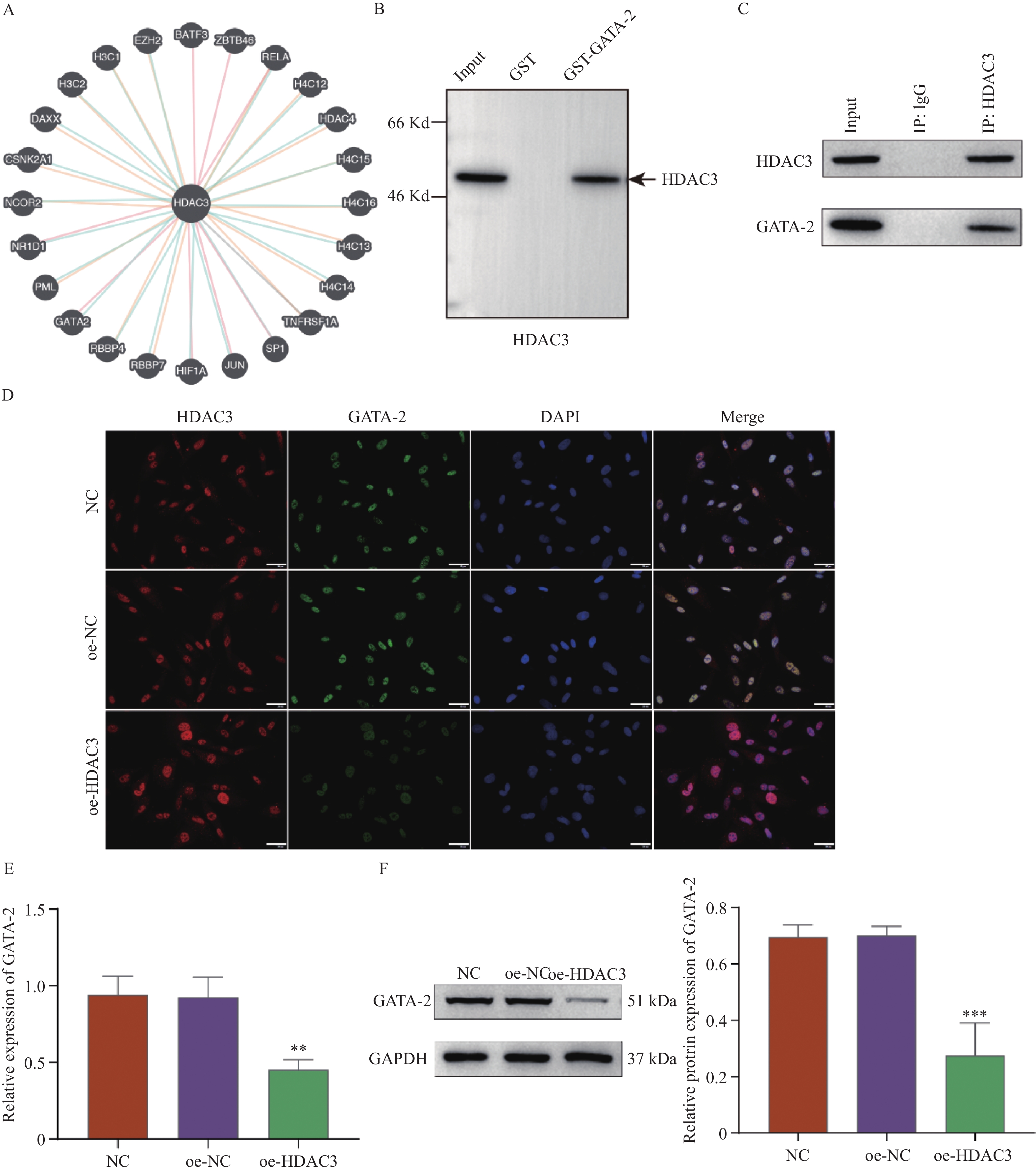图 4 HDAC3通过下调GATA-2抑制hDPSCs成骨分化