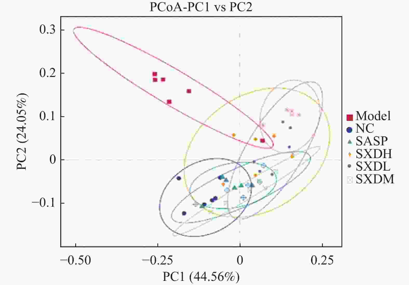 Table 2. Relative abundance of gut microbiota at the genus level in each group of mice ($\bar x \pm s $/%,n = 8)