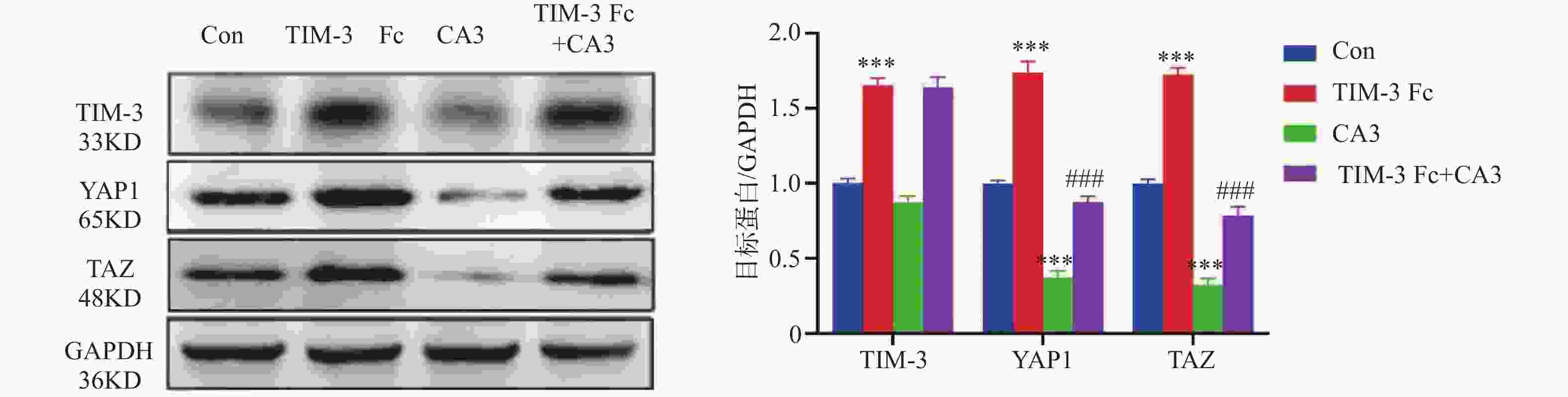 注:GAPDH为内参。与Con组相比,***P < 0.001;与TIM-3 Fc组相比,###P < 0.001。
