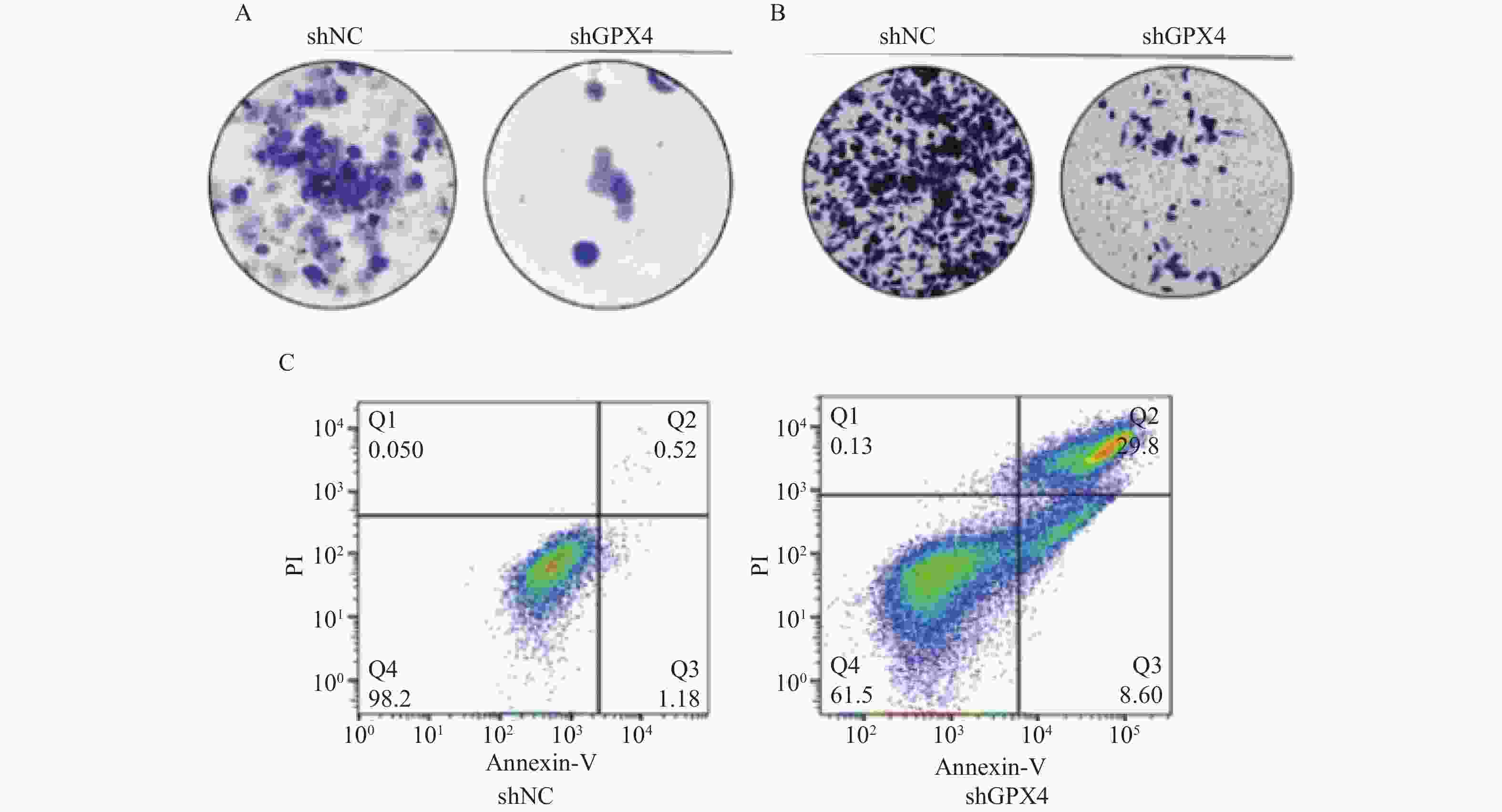 项目 shNC组(6) shGPX4组(6) t P df Cohen’s d 克隆的相对(折叠)数 0.89±0.07 0.37±0.05 14.94 <0.001 10 8.21 细胞的相对(折叠)数 0.99±0.07 0.33±0.06 16.72 <0.001 10 9.24 细胞凋亡率(%) 12.60±2.48 61.64±7.03 16.12 <0.001 10 8.91 (独立样本t检验) 表 4 GPX4 敲低诱导 EC 细胞铁死亡