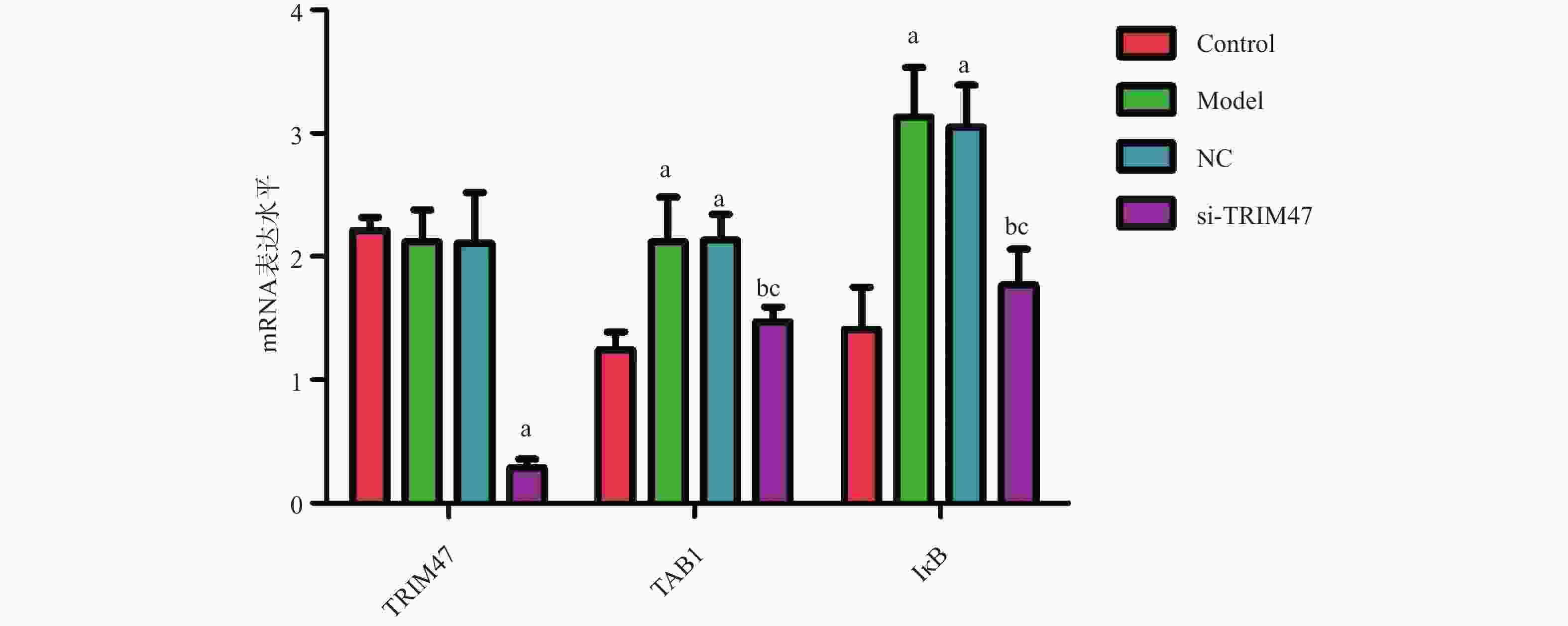 Figure  3.  Effect of si-TRIM47 on the mRNA expression of TAB1 and IκB genes in ALI rats ($\bar x \pm s $,n = 3)