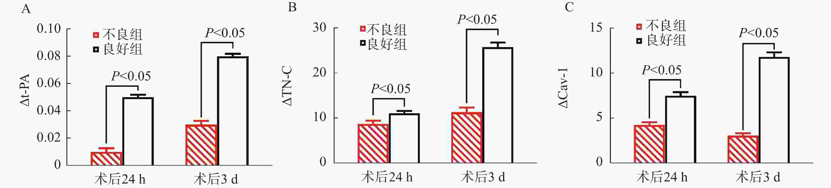 表 1 围术期t-PA、TN-C、Cav-1变化计算公式