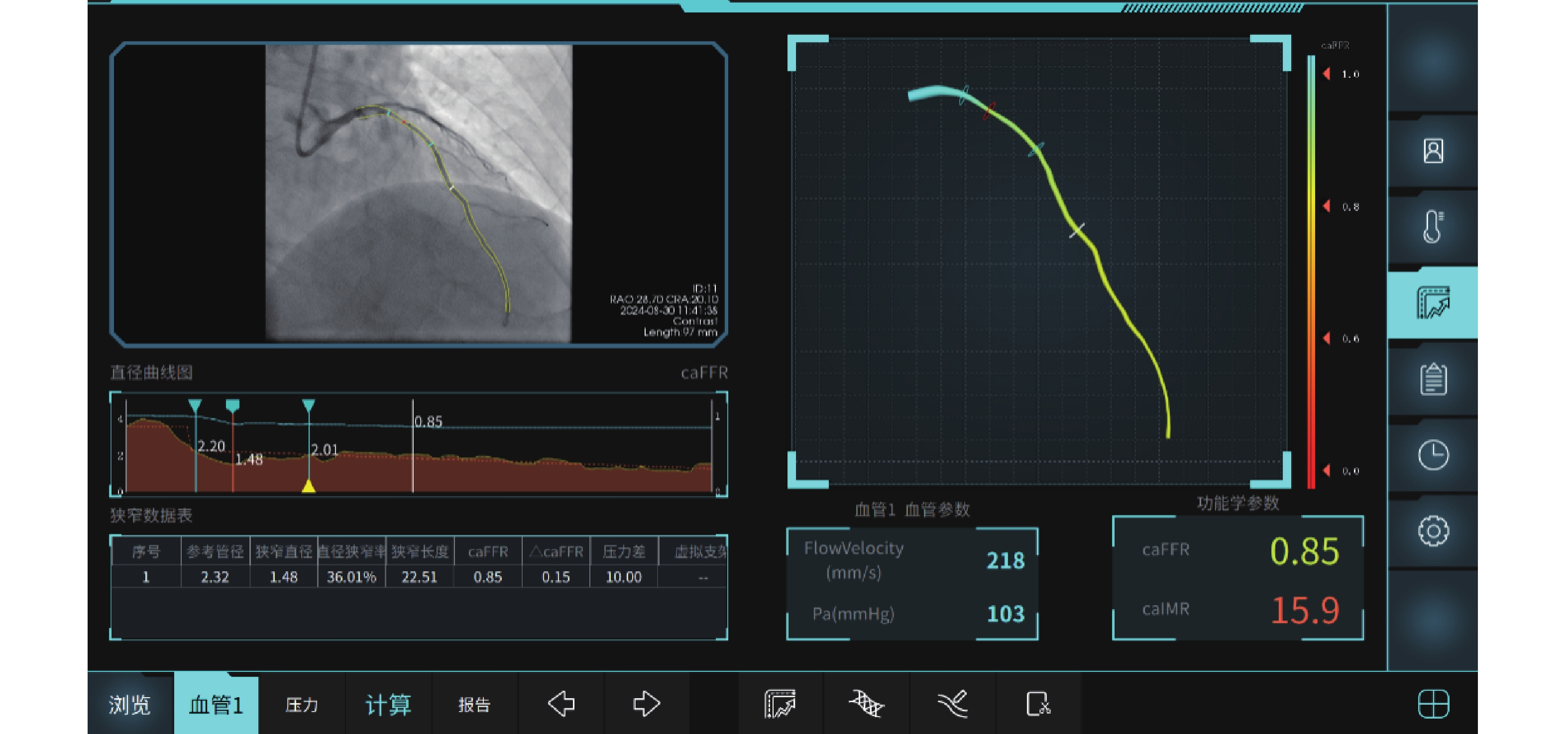Objective To evaluate the diagnostic efficacy of coronary angiography-based microcirculatory resistance index for coronary microcirculatory dysfunction through cardiac magnetic resonance (CMR), and further explore the correlation between coronary microcirculatory dysfunction and silent cerebral infarction. Methods 231 patients from the Cardiovasology Department of the Second Affiliated Hospital of Kunming Medical University between January 2021 and December 2024 were selected. The caIMR value of the left anterior descending coronary artery was analyzed using the FlashAngio system, with patients divided into normal coronary microcirculation group (caIMR<25, n = 126) and coronary microcirculatory dysfunction group (caIMR≥25, n = 105). General clinical data, laboratory indicators (complete blood count, biochemical panel, glycated hemoglobin), cranial CT/MRI results, cardiac microcirculatory perfusion MRI parameters (time to peak [tpeak], relative signal intensity at peak [RSIpeak], maximum upslope [Slopemax]), and routine transthoracic echocardiography parameters of all patients were collected. Results (1) Among 50 patients who completed both CMR and caIMR, the caIMR≥25 group showed varying degrees of tpeak prolongation, with reduced RSIpeak and Slopemax, indicating coronary microcirculatory dysfunction. Cohen's Kappa consistency analysis showed a Kappa value of 0.839 (P < 0.05), suggesting high accuracy of caIMR in identifying CMD; (2) 127 diabetic patients were categorized based on HbA1c levels into good glycemic control group (4%≤HbA1c<6%), moderate glycemic control group (6%≤HbA1c<8%), and poor glycemic control group (HbA1c≥8%). Comparing 40 patients in the good control group, 59 in the moderate control group, and 28 in the poor control group, the median caIMR values in the moderate and poor control groups were higher than the good control group (P < 0.05). The moderate control group's median caIMR of 24.60 was close to the diagnostic threshold of 25, while the poor control group's median caIMR of 32.15 was significantly higher; (3) In the coronary microcirculatory dysfunction group, several patients simultaneously had silent cerebral infarction, which was less common in the normal microcirculation group, with statistically significant difference (P < 0.05). Further Phi coefficient correlation analysis showed a coefficient of 0.562, with statistically significant difference (P < 0.001), suggesting a correlation between coronary microcirculatory dysfunction and silent cerebral infarction. Conclusion caIMR demonstrates high accuracy in identifying coronary microcirculatory dysfunction, with good consistency with CMR assessment. The high prevalence of silent cerebral infarction in patients with coronary microcirculatory dysfunction suggests potential interconnected pathological development in cerebral and cardiac microvascular systems.