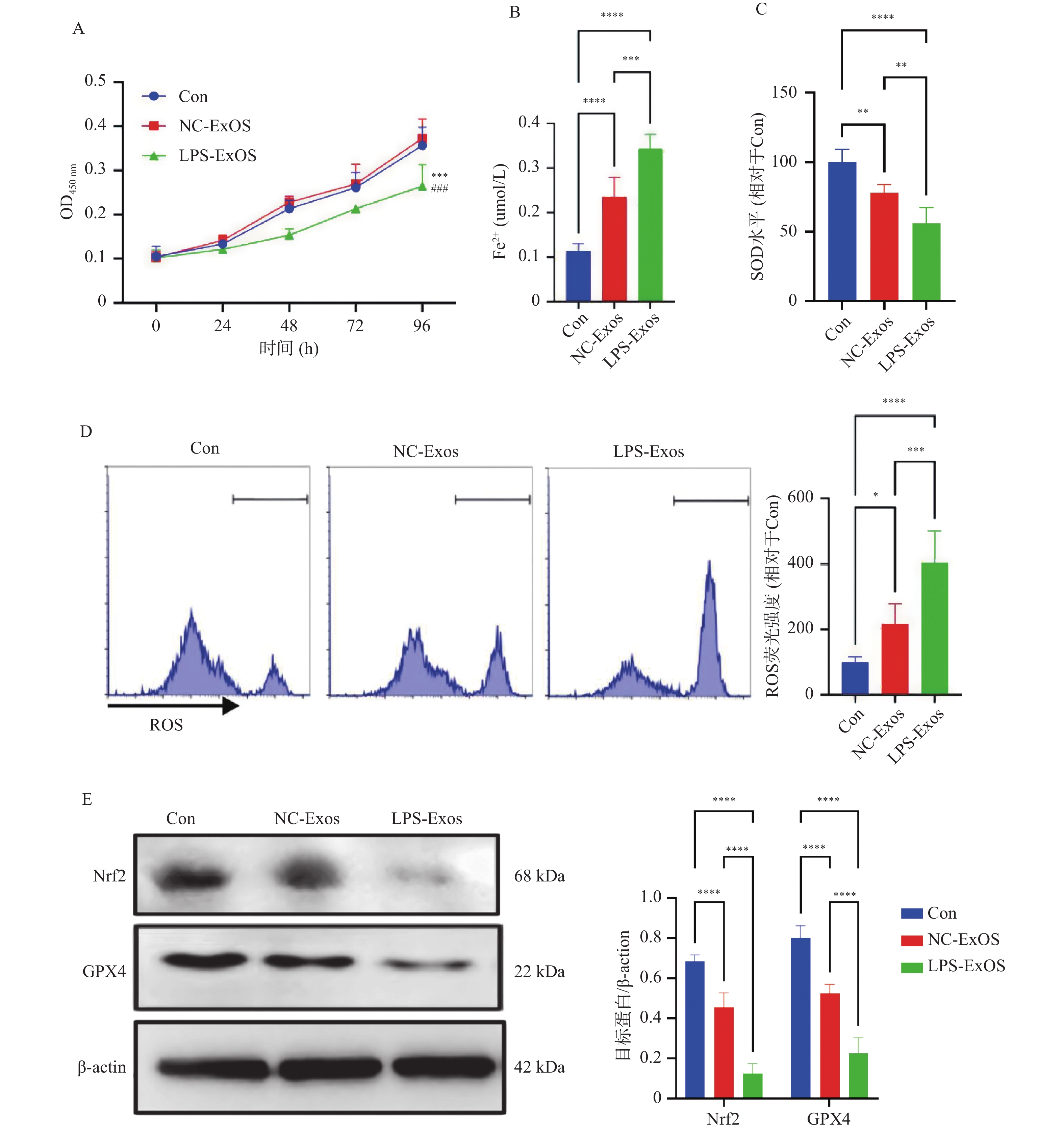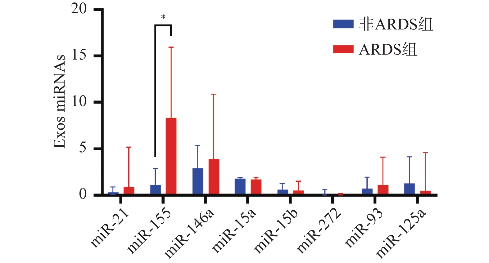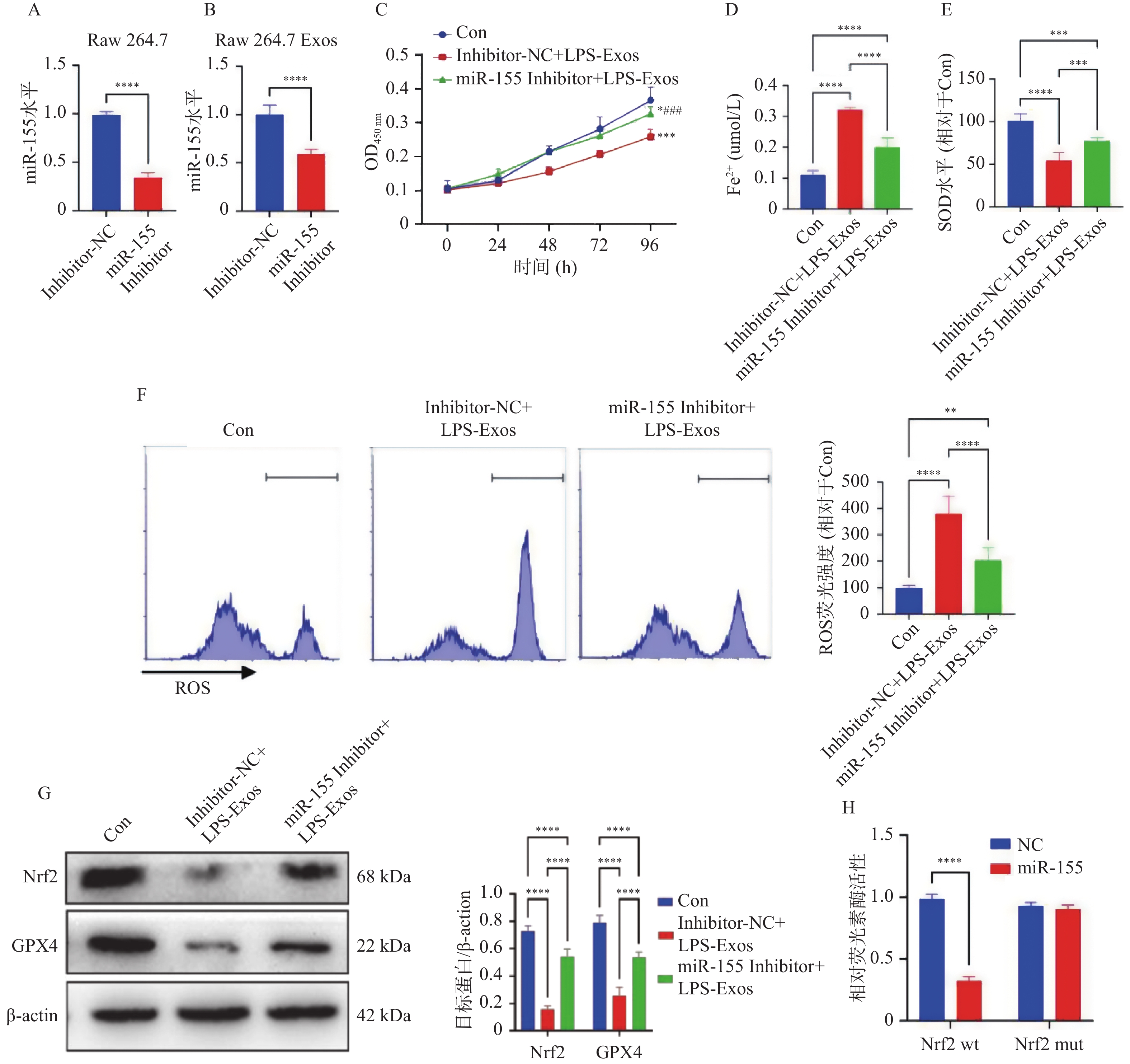 Objective To investigate the intervention mechanism of miR-155 in alveolar macrophage (AM)-derived exosomes (Exos) on ferroptosis of endothelial cells in septic patients. Methods This was a single-center study of 106 septic patients admitted to Handan Central Hospital from January 2022 to June 2023. Patients were further stratified into ARDS group (n = 21) and non-ARDS group (n = 85) based on the presence or absence of acute respiratory distress syndrome (ARDS). In vitro, exosomes from lipopolysaccharide (LPS)-treated Raw 264.7 cells were co-cultured with mouse pulmonary microvascular endothelial cells (PMVEC) as the LPS-Exos group. Exosomes extracted from normal Raw 264.7 culture supernatant served as the normal control group (NC-Exos), and PMVEC cell culture alone served as the blank control group (Con). Exosomes were isolated from conditional culture medium of macrophages or bronchoalveolar lavage fluid (BALF) from septic patients. miR-155 expression was analyzed by RT-qPCR, and GPX4 and Nrf2 protein expression was analyzed by Western blotting. Changes in Fe2+, SOD and ROS levels in PMVEC cells were detected using assay kits. Results Compared to the non-ARDS group, the ARDS group exhibited higher age, SOFA score, miR-155 expression, and lactate levels (P < 0.05). miR-155 expression was significantly upregulated in LPS-Exos compared to NC-Exos (P < 0.01). Compared with Con group, the activity and SOD level of PMVEC cells in LPS-Exos group decreased (P < 0.01), while the levels of Fe2+ and ROS in cells increased (P < 0.05). Compared with NC-Exos group, the protein expression of classical ferroptosis suppressor genes such as GPX4 and Nrf2 in PMVEC cells was decreased in LPS-Exos group (P < 0.05). Compared with Con group, PMVEC cell viability, SOD levels, and GPX4 and Nrf2 protein expression were decreased in the Inhibitor-NC+LPS-Exos group (P < 0.001), while Fe2+ and ROS levels were increased (P < 0.0001 ). Compared with the Inhibitor-NC+LPS-Exos group, PMVEC cell viability, SOD levels, and GPX4 and Nrf2 protein expression were increased in the miR-155 Inhibitor+LPS-Exos group (P < 0.001), while Fe2+ and ROS levels were decreased (P < 0.01). Dual-luciferase reporter analysis confirmed direct binding between miR-155 and Nrf2. Conclusion The elevated level of miR-155 in AM-derived Exos has a superior predictive ability for ARDS development in septic patients compared to the SOFA score. When combined with the SOFA score, it demonstrates high predictive capability for ARDS development in septic patients. LPS-induced AM-derived Exos may promote ferroptosis of PMVEC cells by transporting miR-155, and this mechanism may be related to suppression of Nrf2 expression.